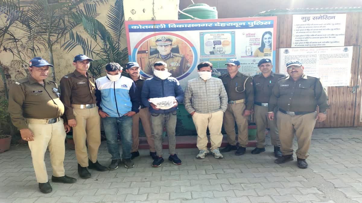 पुलिस की सक्रियता से पकड़े गए तस्कर: सीएम पुष्कर सिंह धामी ने उत्तराखंड को साल 2025 तक ड्रग्स फ्री करने के निर्देश दिए हैं. सीए धामी के इसी संकल्प को पूरा करने की दिशा में पुलिस लगातार नशा तस्करों पर शिकंजा कस रही है. वहीं वरिष्ठ पुलिस अधीक्षक एसटीएफ नवनीत सिंह भुल्लर द्वारा ड्रग्स के खिलाफ कार्रवाई करने के लिए एंटी नाकोटिक्स टास्क फोर्स को उत्तराखंड के संवत जिलों में कड़ी निगरानी रखते हुए कार्रवाई करने के लिए निर्देशित किया गया है. इसी कड़ी के उत्तराखंड एसटीएफ की एंटी नारकोटिक्स टास्क फोर्स द्वारा थाना विकास नगर देहरादून पुलिस के साथ संयुक्त अभियान में 6 नवंबर की सुबह तीन नशा तस्करों को गिरफ्तार किया.